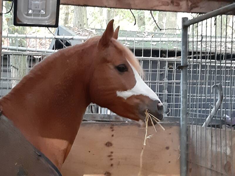 heeft ook al bosritjes bij ons meegelopen. Loopt bij ons in de manegelessen mee.